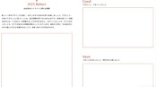 ワークブックの後半は、具体的な行動計画と進捗管理のための「振り返りノート」になっています 。月ごとに目標を細分化して計画し、振り返りができるページ。定期的に進捗を振り返り、学びや改善点を洗い出すことで、継続的な成長を促します